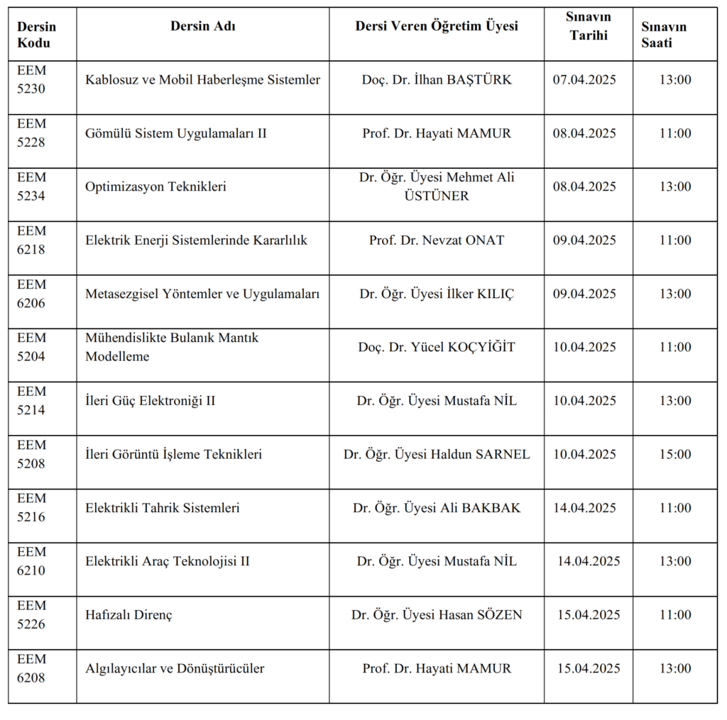 Duyurular 2024-2025 Bahar Dönemi Lisansüstü Ara Sınav Programı By eem On 27 Mart 202527 Mart 2025 Son Güncelleme: 27.03.2025, #13:50
